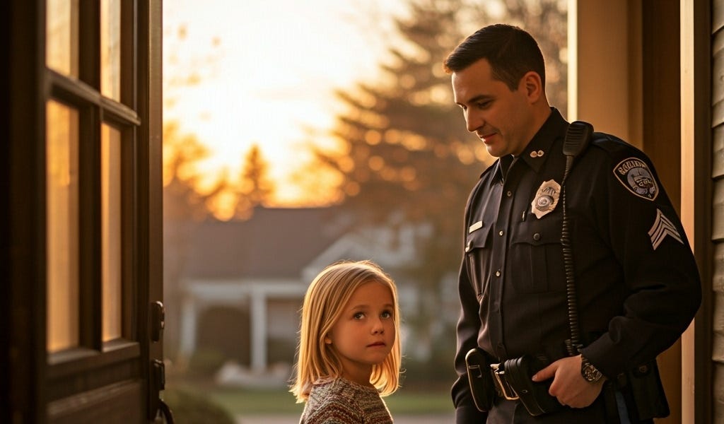 “Er…Mr. and Mrs. R…..? Is this your daughter?” intoned the burly officer.